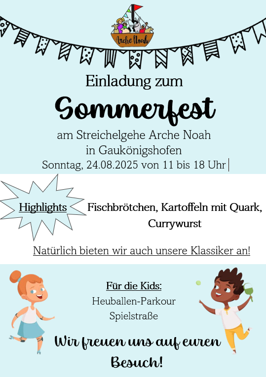 Herzliche Einladung zu unserem Arche-Sommerfest am Sonntag, 18. August 2024!